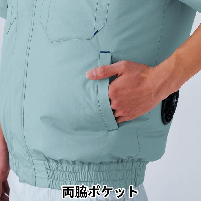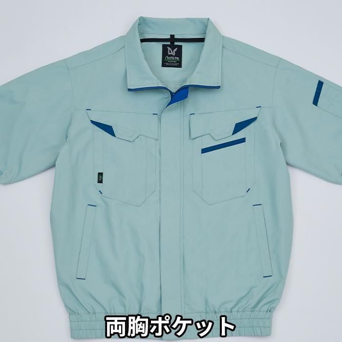 ~25V【選べるファン】帯電防止・エコマーク!空調服® 半袖ブルゾン+スターターキット(ファン+バッテリー付)|Asahicho E9208-SET
